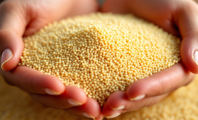 Du semis au produit fini, nous maîtrisons la totalité de la chaîne de production. Avec passion et expertise, nous transformons le millet jaune du champ à l'assiette, tout en respectant les normes de qualité les plus élevées.